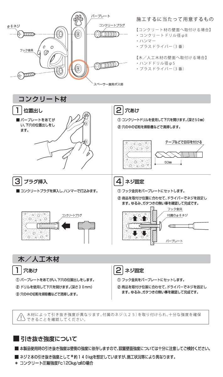 ・コンクリートプラグ×2個(木部以外に取り付ける際に使用)